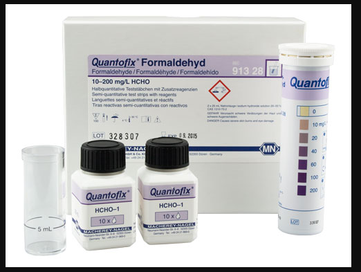 QUANTOFIX Formaldehyde semi-quantitative test strips and reagents for the determination of formaldehyde in solutions. Measuring range: 0-10-20-40-60-100-200 mg/L HCHO __UN 3316 Chemical kit 9 II 0.050 L ADR/GGVSEB M11 (E) ADR 3.3.1/251: LQ PAX 960 10 Kg CAO 960 10 Kg