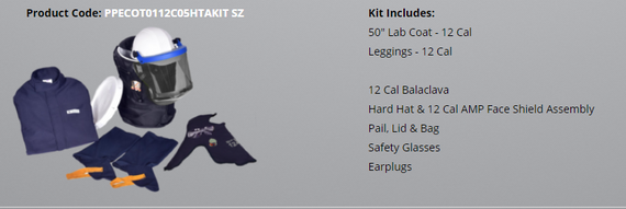 Arc Rated Safety "PPE in a Pail" 12 Cal Lab Coat Highly Transparent AMP Shield with Light Kit - please choose size