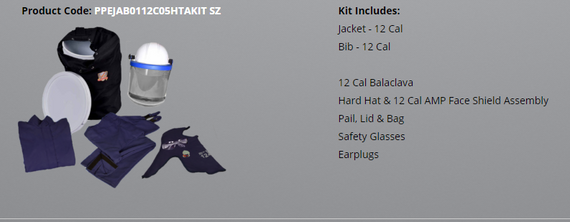Arc Rated Safety "PPE in a Pail" 12 Cal Jacket & Bib Highly Transparent AMP Shield with Light Kit - please choose size