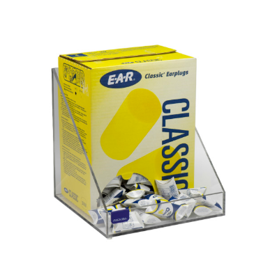 Rackem Safety 200-Pair (1-Box) Diagonally Cut Tray Foam Ear Plug Dispenser, CLEAR PLASTIC, 11" H x 11" W x 11"D diagonally cut tray