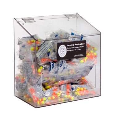 Rackem Safety 300-Pair Foam Ear Plug Dispenser with lid, CLEAR PLASTIC, table or wall mount for easy access, Dimensions: 12.25"H x 12"W x 8"D