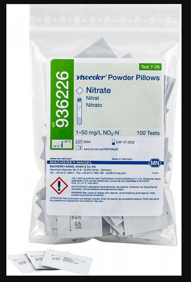VISOCOLOR Powder Pillows Nitrate reagent set for photometric determination of Nitrate. Ideal for pool or drinking water analysis. Measuring range: 1.0 - 50 mg/L NO3-N