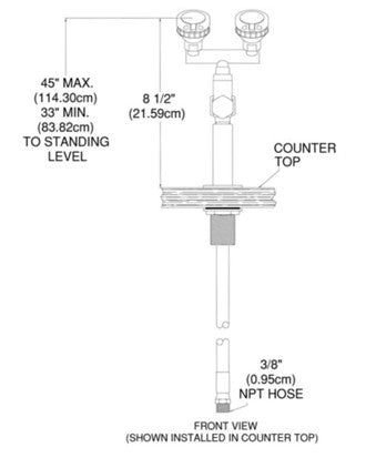 Mount 33" to 45" high with 6" from any obstruction and position for hand-free operation to use as an eyewash per ANSI Z358.1-2014.