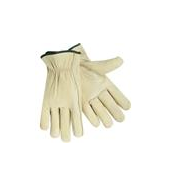 Preferred by construction, farm, and ranch equipment operators, these unlined grain leather drivers work equally well for general-purpose applications that require greater dexterity. They feature assorted thumb styles, shirred elastic backs, and slip-on cuffs. Natural. Sold by the dozen.