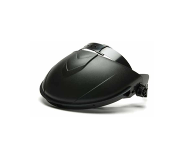 Constructed from durable nylon. • Ratchet adjustment for easy fit. • Pivoting action allows user to lift face shield while wearing. • Adjustable pegs will accommodate a wide variety of face shields.