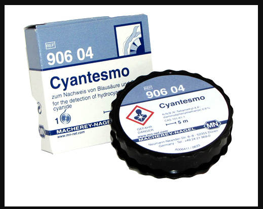 Cyantesmo test paper allows the quick and easy detection of hydrocyanic acid and cyanides in aqueous solutions and extracts. They are for example formed in the manufacture of fruit brandies and are toxic even in low concentrations. No dangerous goods according transport regulations.