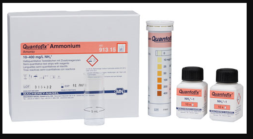 QUANTOFIX Ammonium semi-quantitative test strips and reagents for the determination of ammonium in solutions. Measuring range: 0-10-25-50-100- 200-400 mg/L NH4+ __UN 3316 Chemical kit 9 II 0.060 L ADR/GGVSEB M11 (E) ADR 3.3.1/251: LQ PAX 960 10 Kg CAO 960 10 Kg