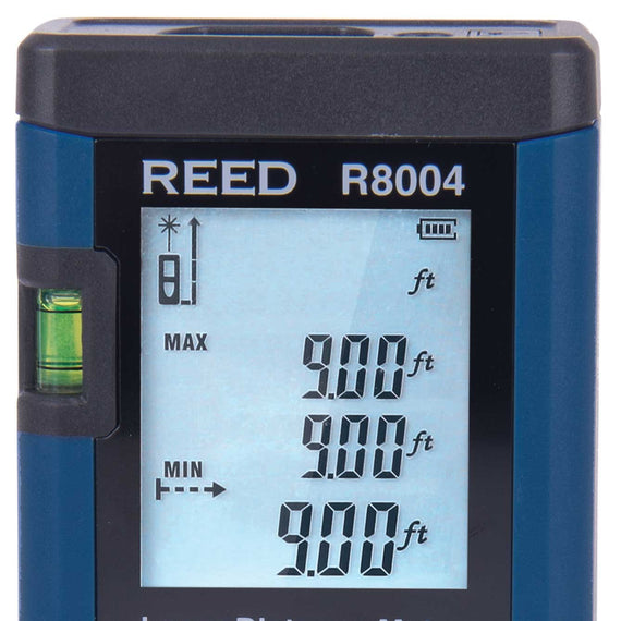 This laser distance meter measures up to 131 feet (40 meters) and features a backlit multi-line LCD display and the ability to calculate area, volume and sum of lengths. The R8004 is capable of retaining maximum and minimum readings and up to 30 measurements in memory