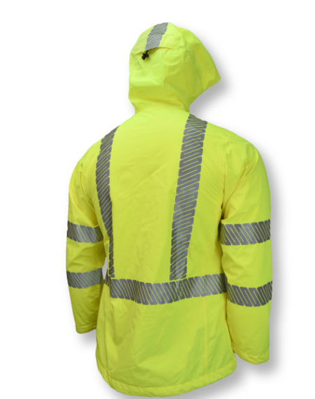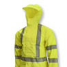 The Radians RW12L is a ladies Type R, Class 3 general-purpose rain jacket that is lightweight, features an adjustable hem with toggle, underarm venting with zipper, and conveniently folds into its hood or lower front pocket for packable portability. Great for wet and windy conditions. Constructed from lightweight Ripstop waterproof polyester.