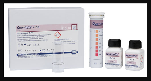 QUANTOFIX Zinc semi-quantitative test strips and reagents for the determination of zinc (Zn 2+ ) in solutions. Measuring range: 0-2-5-10-25-50-100 mg/L Zn2+ __UN 3316 Chemical kit 9 II 0.060 L ADR/GGVSEB M11 (E) ADR 3.3.1/251: LQ PAX 960 10 Kg CAO 960 10 Kg