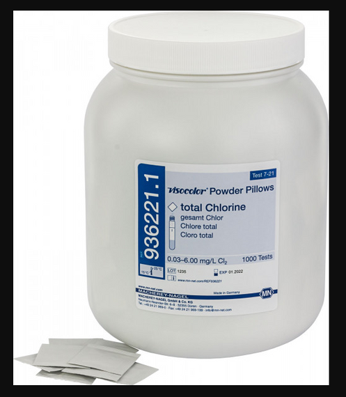 VISOCOLOR Powder Pillows total Chlorine reagent set for photometric determination of total chlorine. Ideal for pool or drinking water analysis. Measuring range: 0.03-6.00 mg/L Cl2