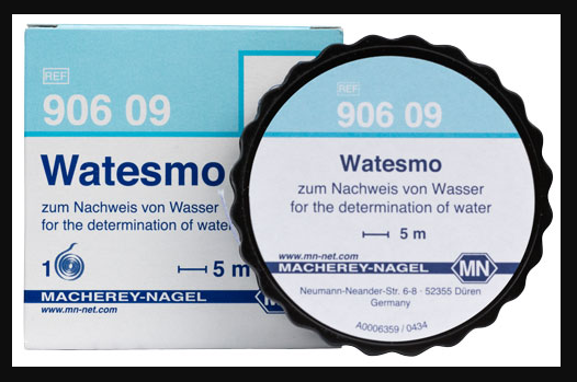 Watesmo test paper allows the quick and easy detection of water and water vapor. On contact with water the paper changes color from light blue to dark blue. The reaction is not reversible. The test paper is used to control the leak tightness of tubing or to detect condensed water.