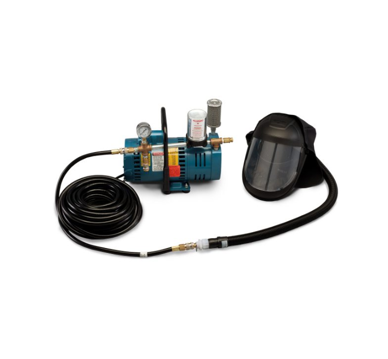 Perfect for use with grinding, chipping, spray painting and body repair, this comfortable Supplied Air Shield is offered as a complete system for one worker. They include one Shields, a 3/4 hp or 1-1/2 hp breathing air pump and one 50 foot breathing hose. Complies with ANSI Z87.1-2003.