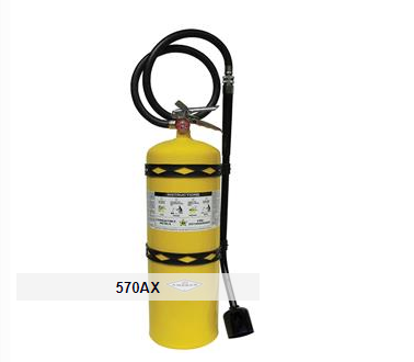 Designed for use on combustible metal fires, this dry powder unit is fitted with a “soft-flow” extension applicator. This "tip" keeps the operator away from extreme heat and toxic fumes caused by burning material. Unit comes with a special corrosion-resistant yellow (Class D) color-coded paint finish too. FM approved.
