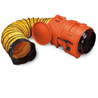 Lightweight, portable and durable, this high output blower is ideally suited for large confined spaces such as paper mills, tank purging or utility sites. “Safety orange” in color and is made from corrosion-, UV- and chemical-resistant polyethylene. This blower delivers both positive and negative airflow from a three-blade polypropylene fan. Super quiet, molded carry handle with built-in On/Off switch, and enclosed electrical components are all part of the construction and design of this blower. The 25′ ducting stores conveniently within the canister. Certified to CSA Standard C22.2 No.113. CE Certified.